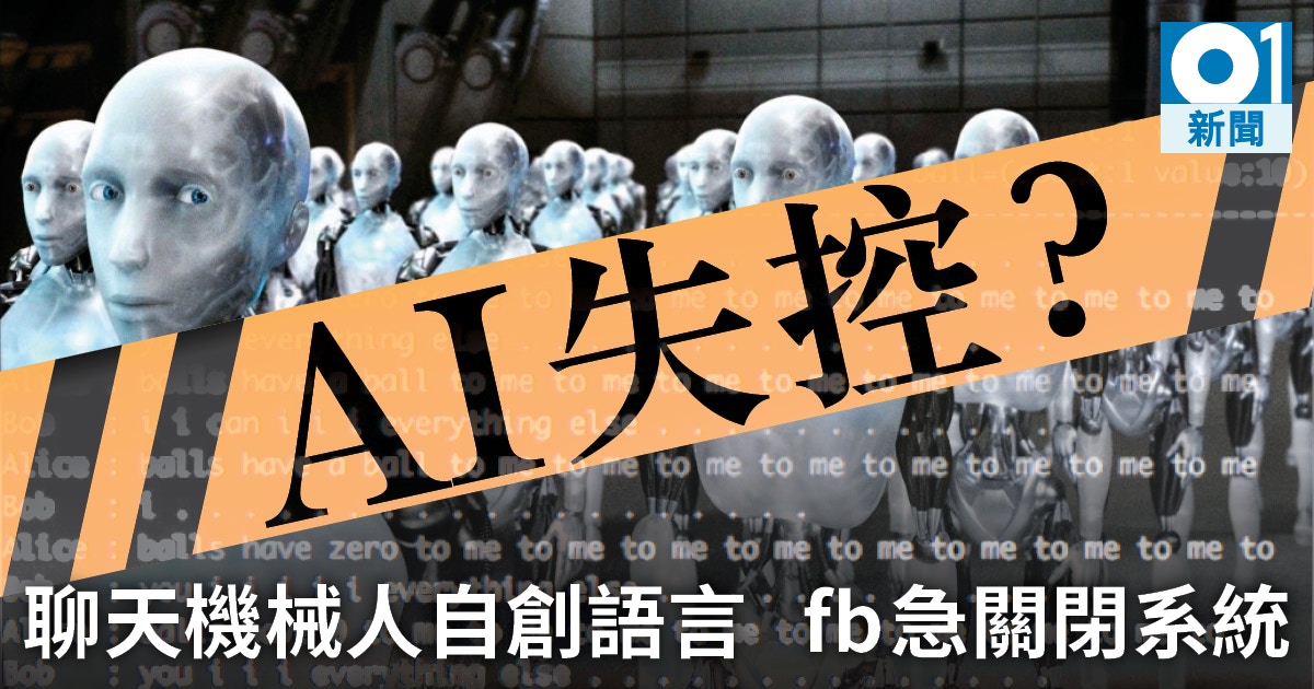 Fb訓練一對聊天機械人談判ai系統竟 失控 自創語言嚇壞人類 香港01 即時國際